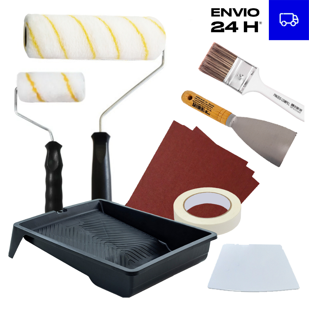 Kit Pintura Parede Completo Rolo Sem Respingo 7 Peças C/ Lixa e Fita Crepe
