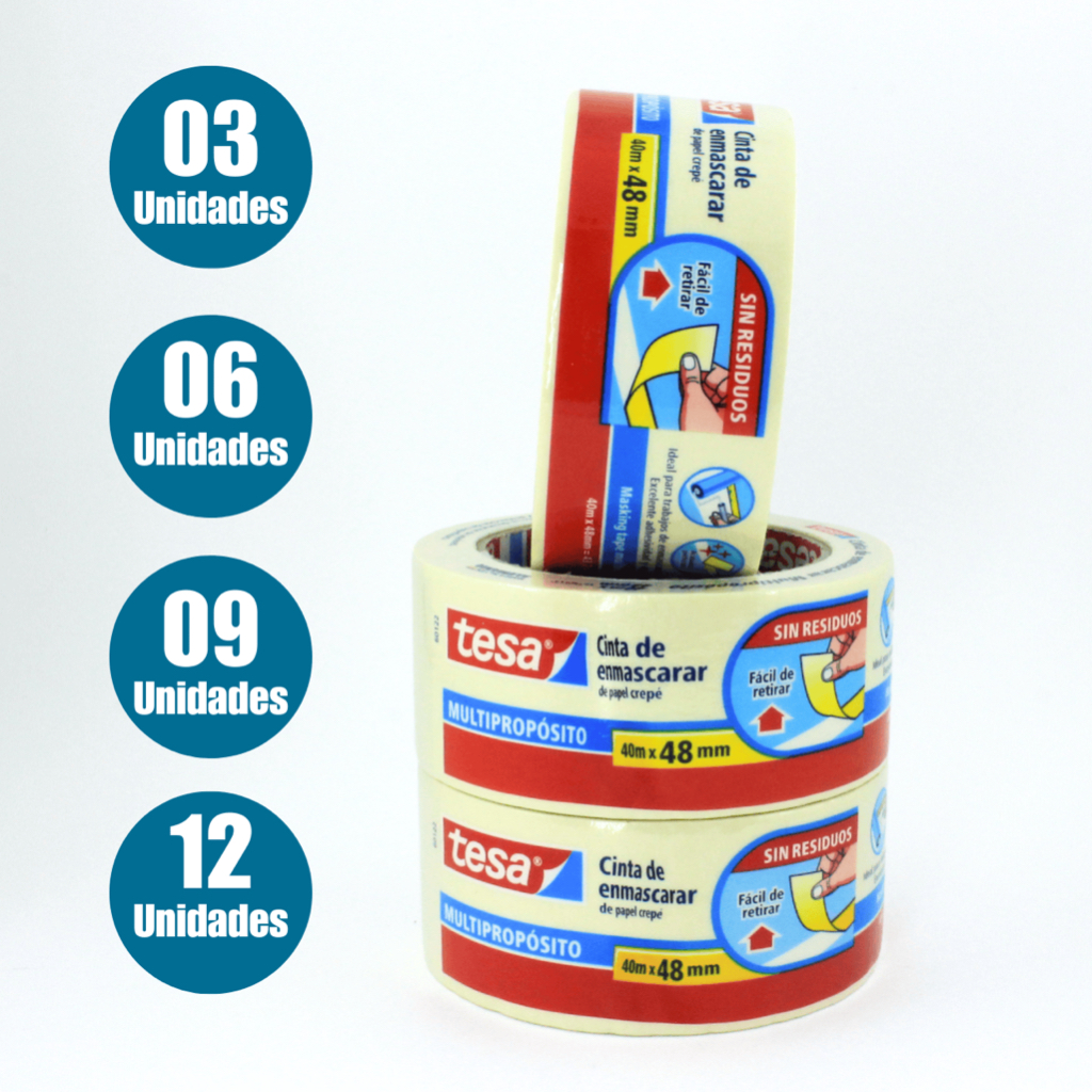 Kit 03 Fitas Crepe p/ Pintura - Multiuso Tesa 40m x 48mm - Qualidade Profissional