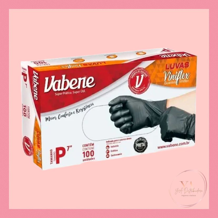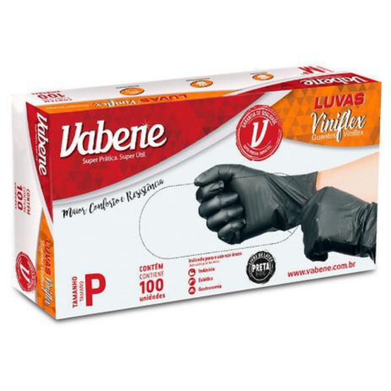 Luva Vabene Viniflex Preta Black Profissional C/ 100 - Tam P M G (NÃO É VINIL, NÃO É LATEX)