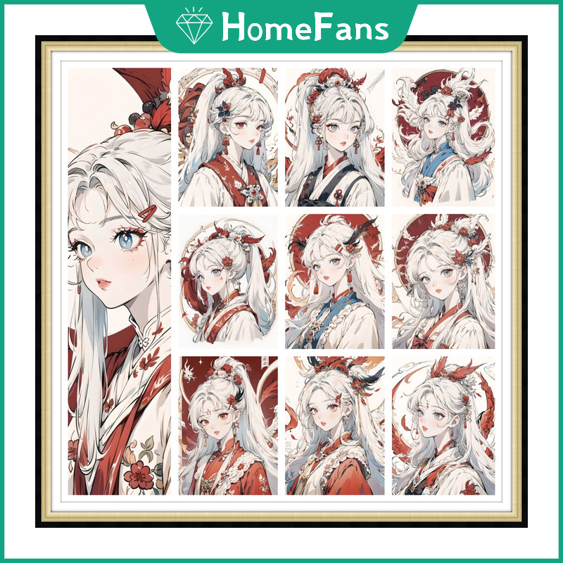 【 HF 】 Red Ancient Pintura Com Diamante Estilo Garota 5D Full Diamond Living Room Paste Cross Stitch Quarto De Jantar Decoração Bordado Presente
