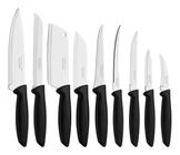 Jogo De Facas Tramontina Plenus Cozinha Em Aço Inox Cabo Preto Top Gourmet 9 Peças Original