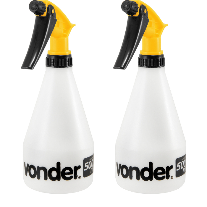 Kit com 2 Borrifador Manual Pulverizador Vonder 500ml Regulável em Spray Jato ou Névoa Jardim, Faxina e Estética Automotiva