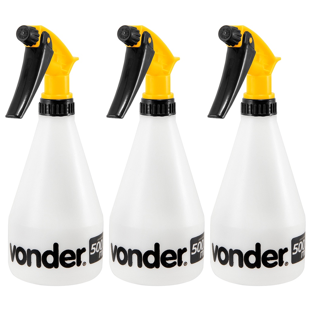 Kit 3 Borrifador Pulverizador Manual Vonder 500ml Jato Regulável Spray, Névoa Jardim ou Jato, Agrícola, Faxina e Estétic