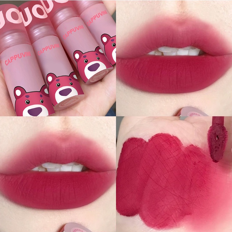 Lama labial de urso brincalhão de um só pacote Veludo fosco fosco à prova d'água Copo antiaderente para os lábios