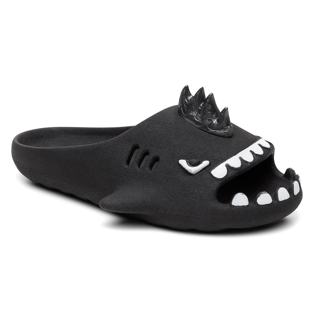 Chinelo Infantil Slide Sharky Fun Tubarao Punk Divertido e 1 Barbatana Extra Valentina Kister Preto