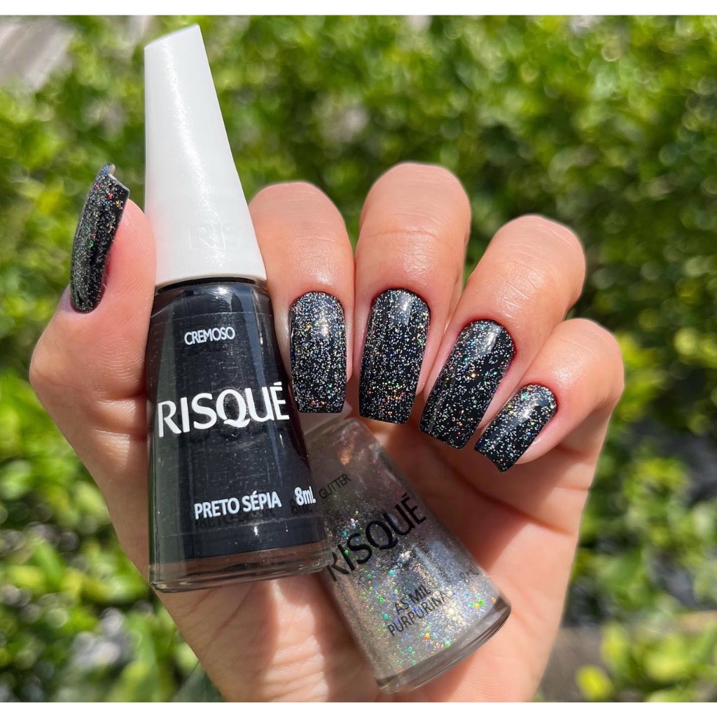 Kit 2 Esmalte Risque Preto Sépia e As Mil Purpurinas 8 ml