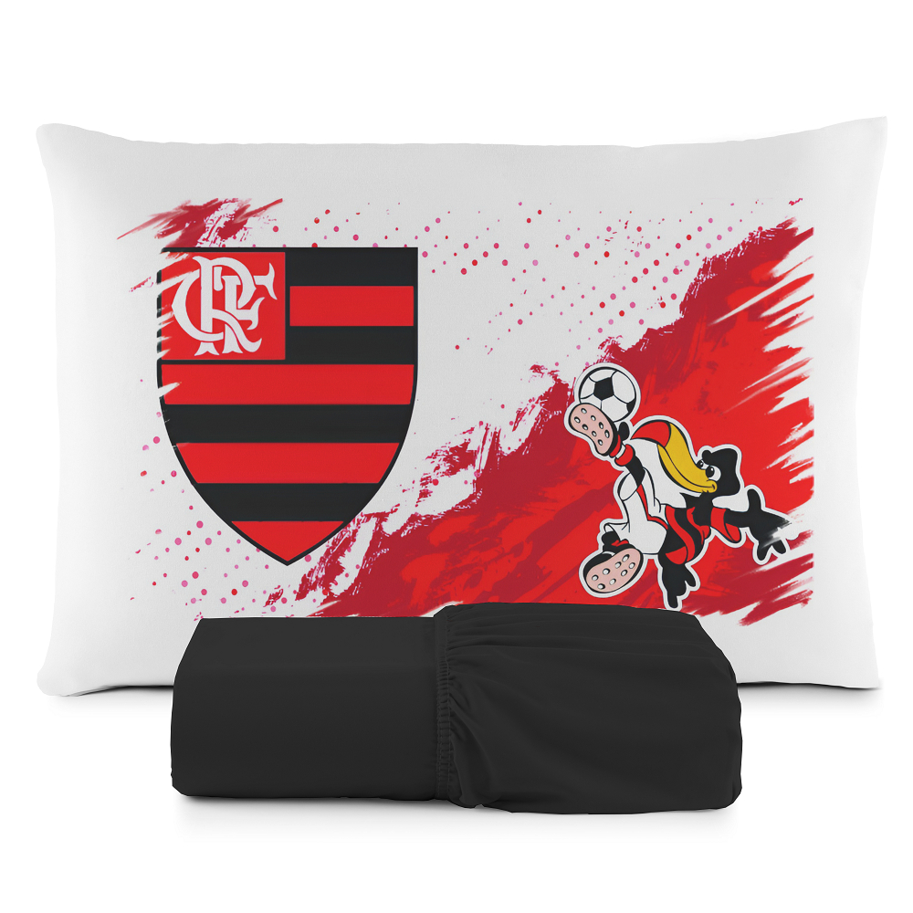 JOGO DE LENÇOL SOLTEIRO INFANTIL FLAMENGO MENGÃO FUTEBOL BRASILEIRÃO FRONHA TRAVESSEIRO, LENÇOLDE ELASTICO