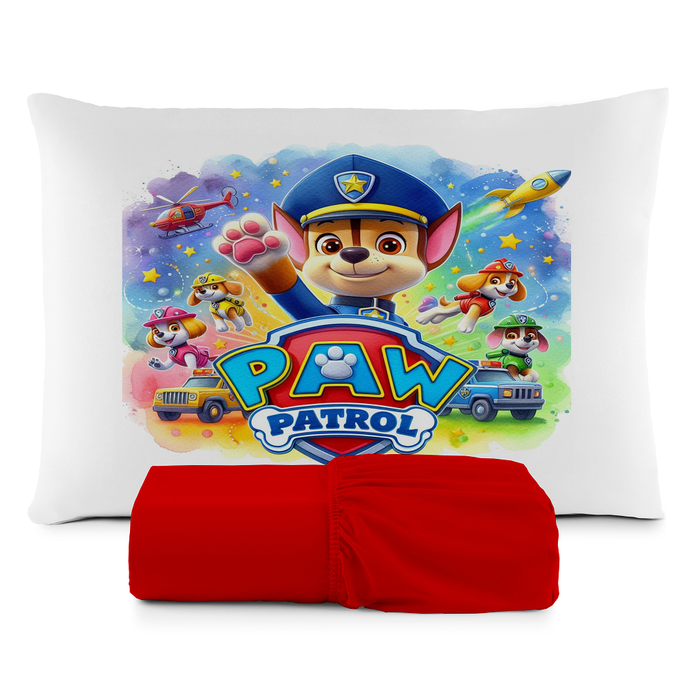 JOGO DE LENÇOL SOLTEIRO INFANTIL PATRULHA CANINA, CHANSE FRONHA TRAVESSEIRO, LENÇOL DE ELASTICO