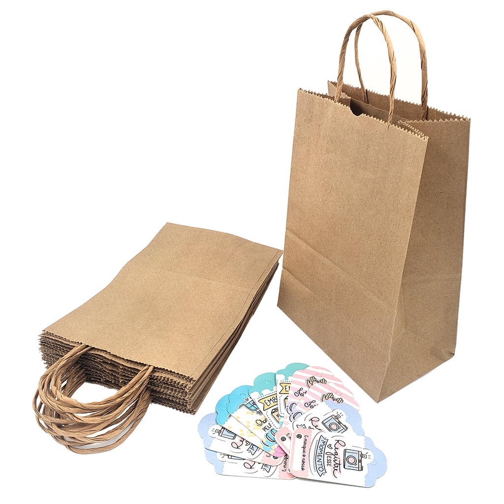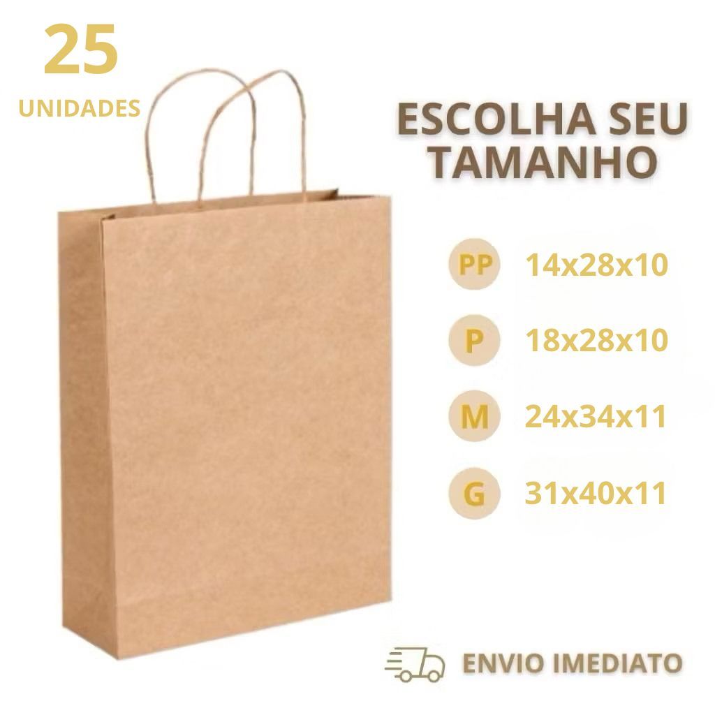 Sacola de papel Kraft Biodegradável com 25 unidades