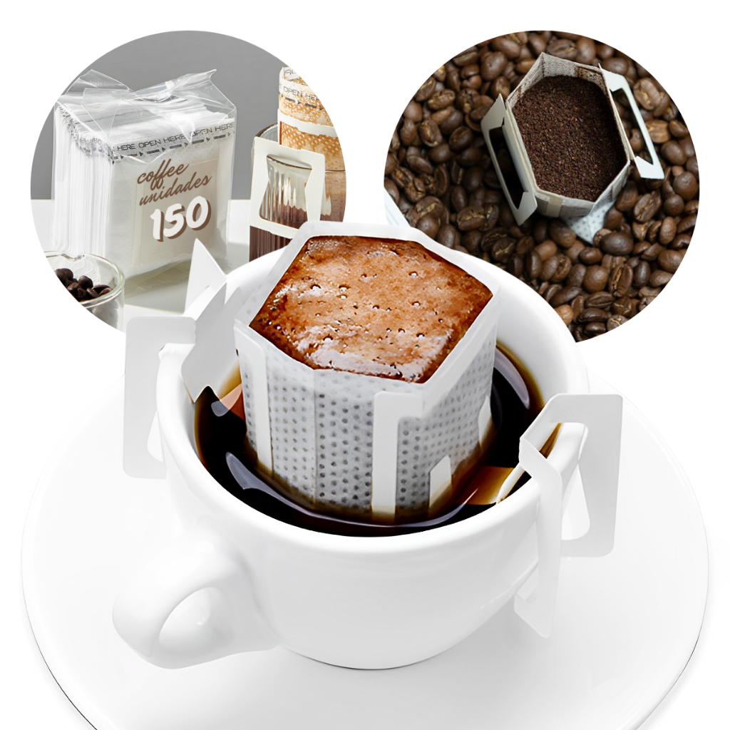 KIT 150 Coador de Café Descartável Individual – Filtro de Papel Portátil com Abas para Dose Única