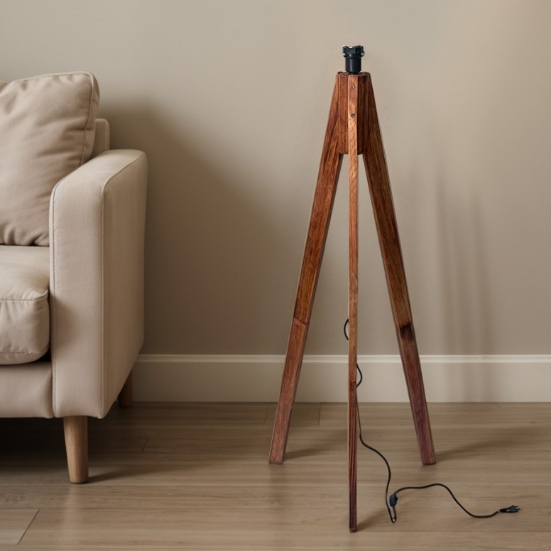Abajur Tripé de Chão 1,30m de Madeira Pinus Avermelhado Luminária de Piso Para Quarto Sala Escritório Iluminação