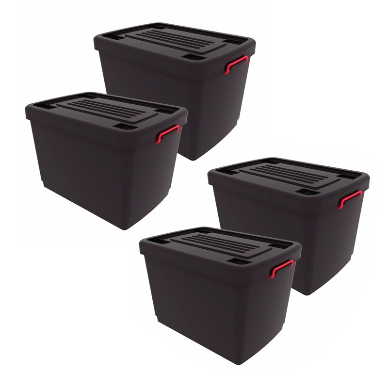 Kit 4 Caixas Organizadoras Plásticas com Rodas e Tampas 95L Preto Oferta