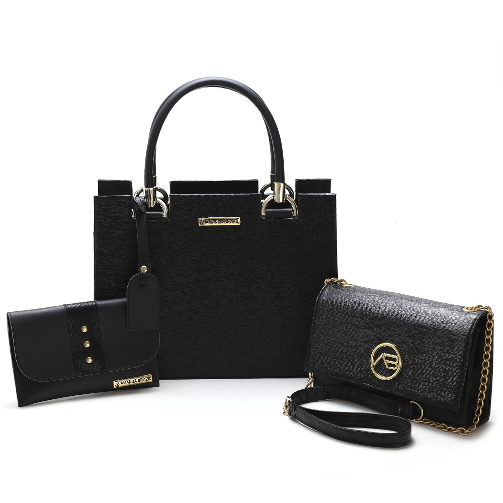 Kit 3 Bolsas Femininas Bolsa Lorena Transversal/Mão E Bolsa Tiracolo Com Porta Documentos