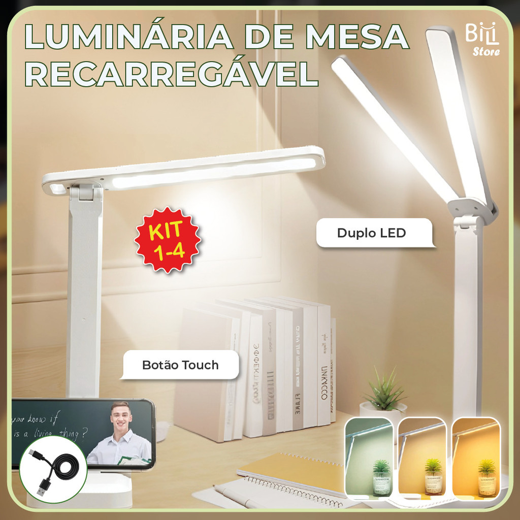 kit 3 Luminária Abajur de Mesa LED Luz Recarregável Touch Haste Flexível Lâmpada De Estudo Sem Fio