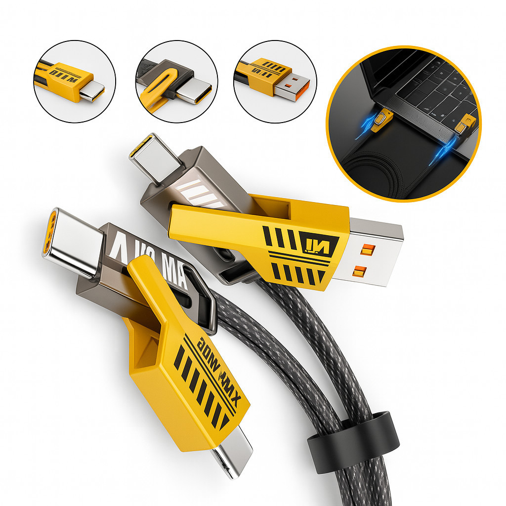 Cabo Carregamento Rápido 4 em 1 TURBO 65W/27W Cabeça de Metal Revestimento de Nylon 1 metro