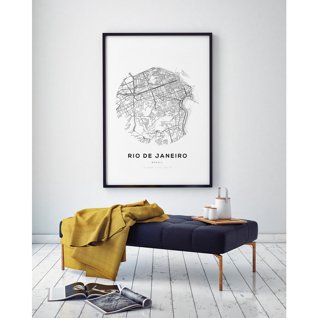 Quadro Decorativo Mapa Rio de Janeiro Brasil Cidades Sala Escritório 43x63cm