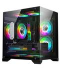 Gabinete Gamer Hayom Aquário com 4 Fans Cooler Led RGB GB1796 Preto