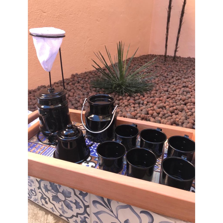Bandeja com Ladrilho + Kit Decorativo Cantinho do Cafe Preto