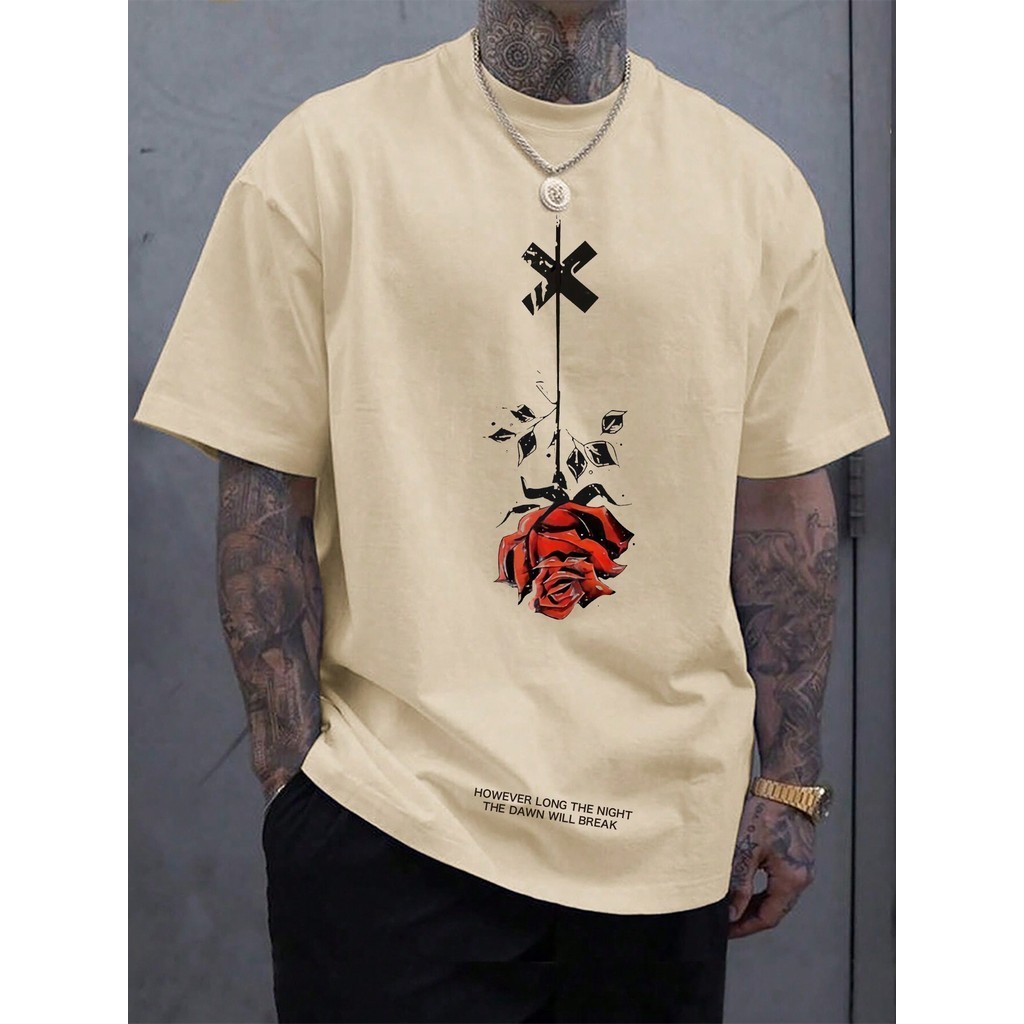 Camiseta Masculina Com Estampa Floral Oversized Com Estampa Floral E Manga Caída Nos Ombros