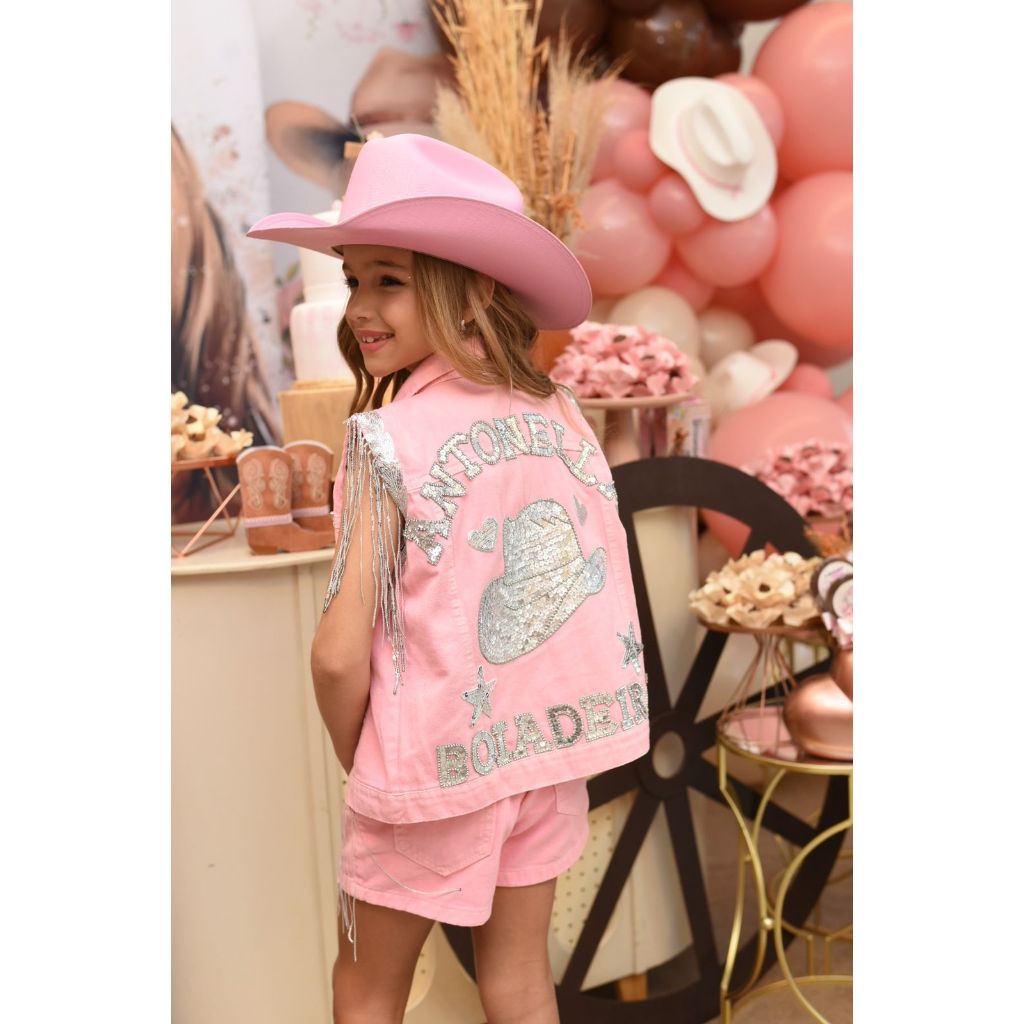 Roupa Rosa Ana Castela Conjunto Boiadeira Infantil Fantasia Country Menina Chapéu tema aniversario
