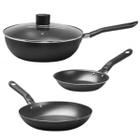 Jogo de Panelas Frigideira e Wok 3 Tamanhos Brinox Antiaderente PRO-FLON Não Gruda