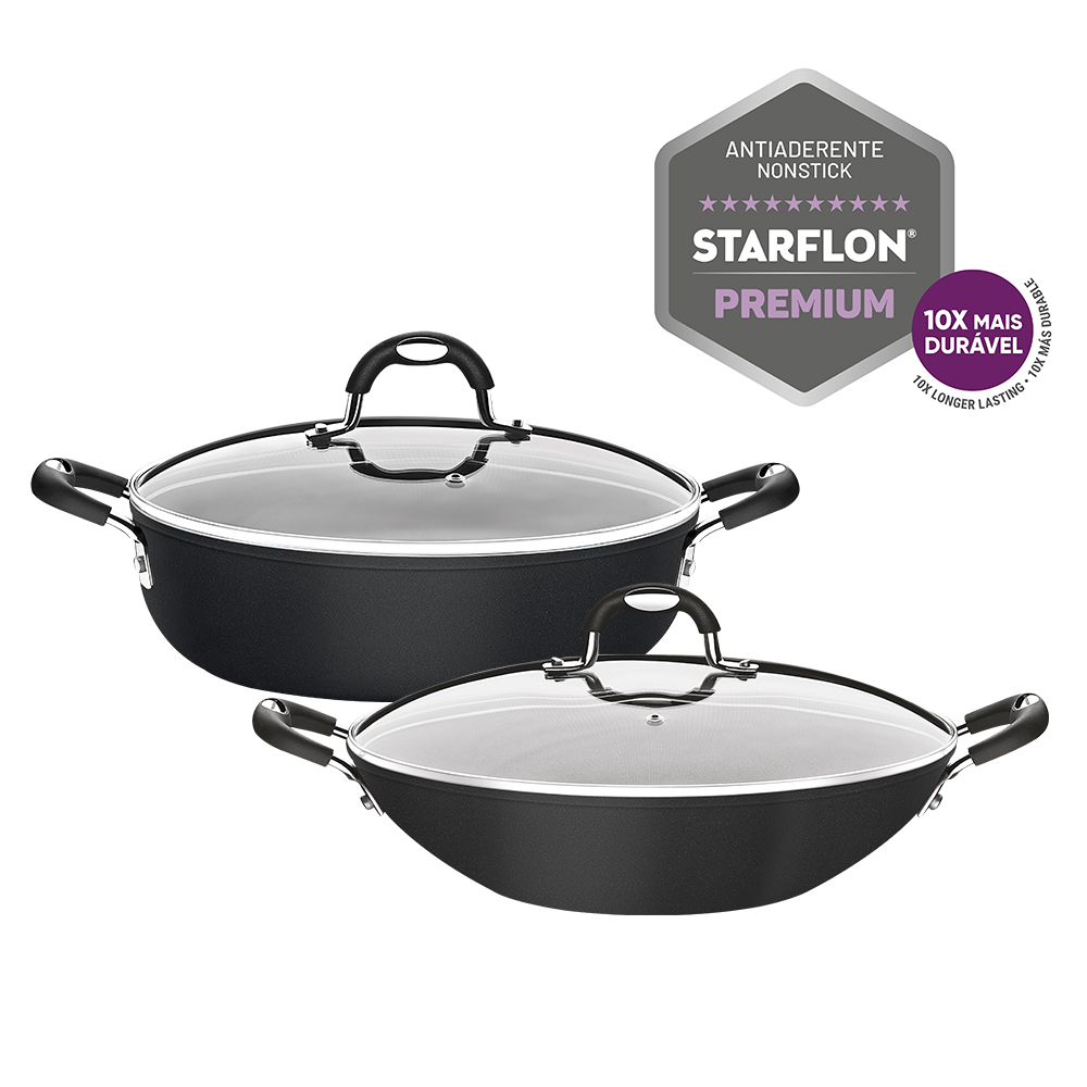 Kit Arrozeira E Wok Mônaco Antiaderente Indução Preta Tramontina