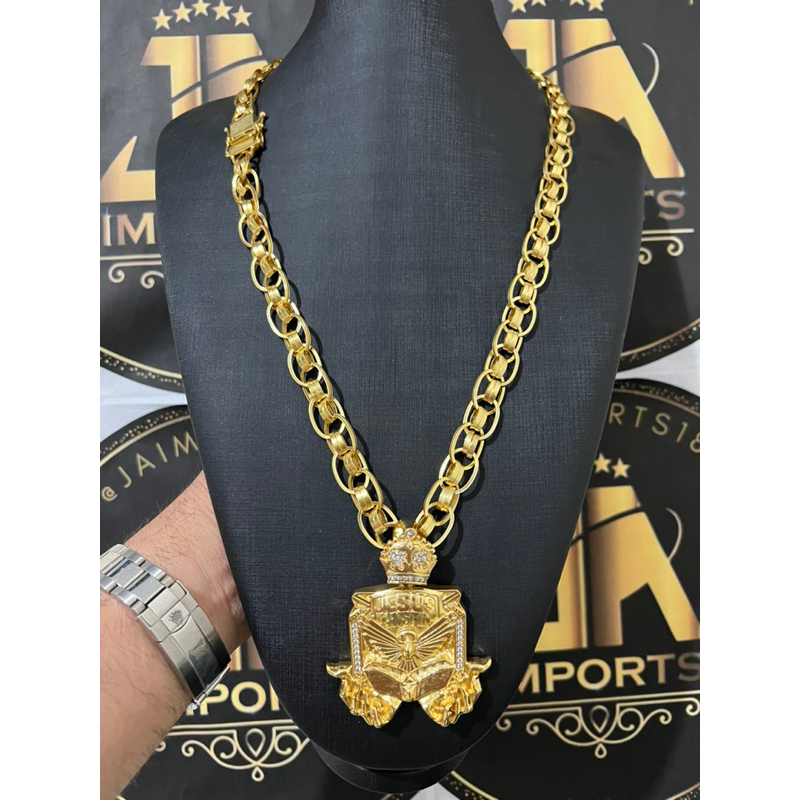 Corrente Cordão Friso S 12mm De Moeda Antiga Pingente Jesus mc poze Top