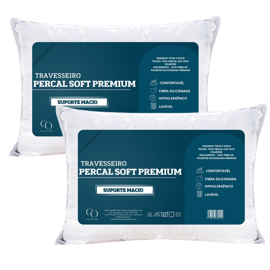 Kit 2 Travesseiro Percal Premium Padrão Hotel 70x50cm Soft Premium Macio Antialérgico Antimofo