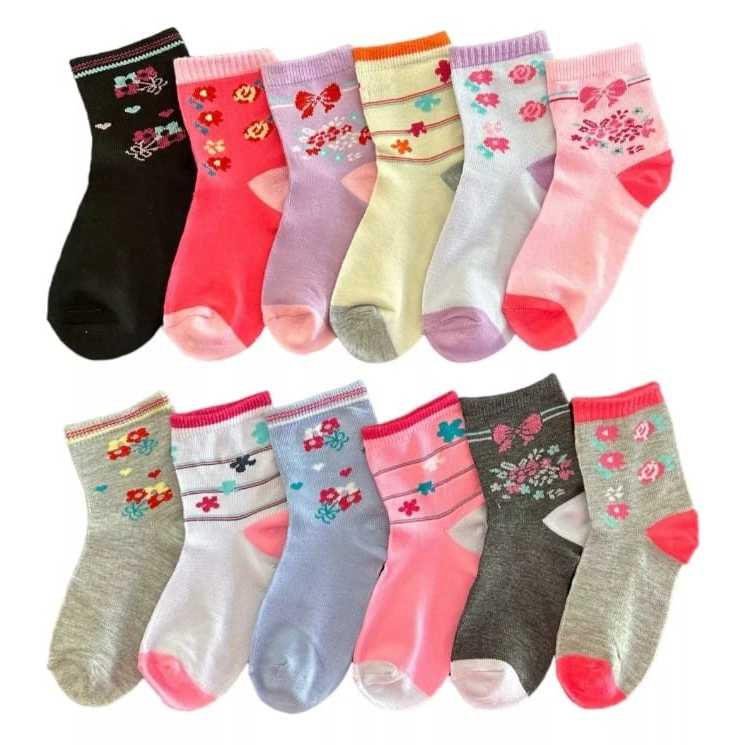 Kit 3, 6 e 12 Pares de Meia Infantil Feminina Estampada Poliéster Algodão