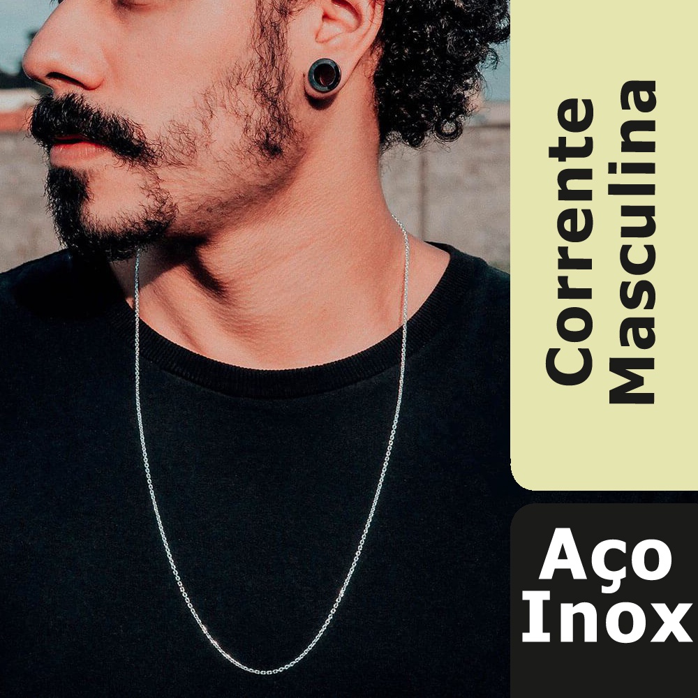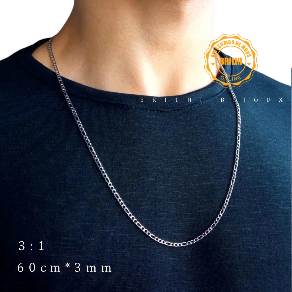 Corrente Masculina fininha 60cm Aço Inox Prata De 3mm polida brilhante não escurece não enferruja