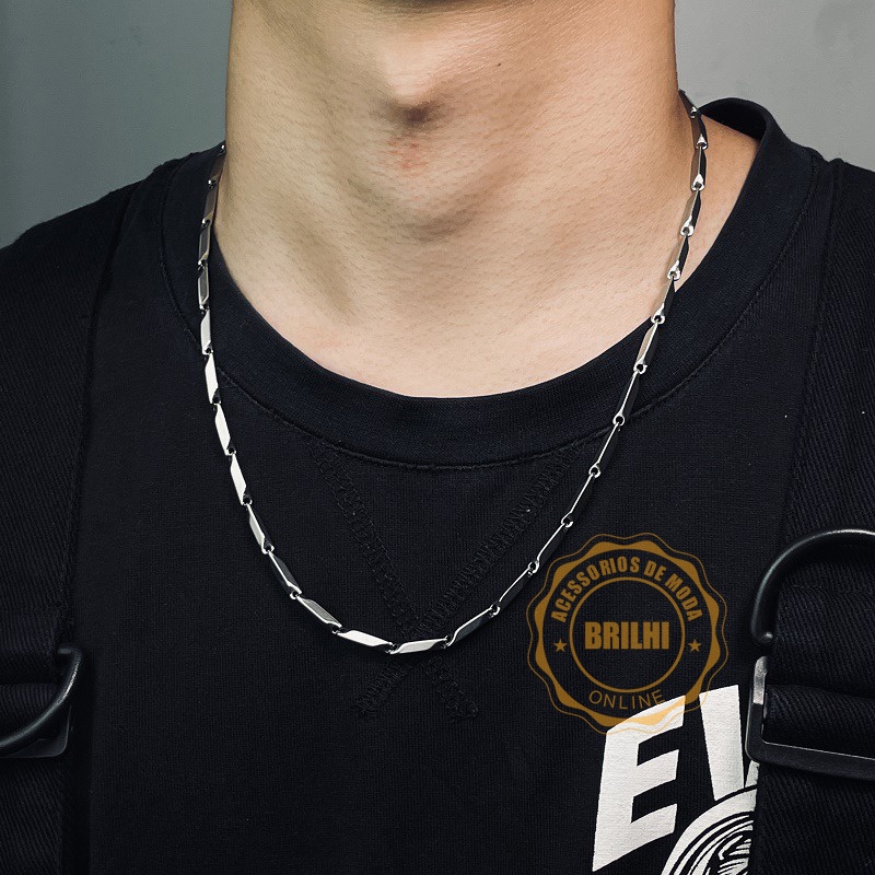 Corrente Masculina fininha Grumet Aço Inox Prata polida brilhante não escurece não enferruja