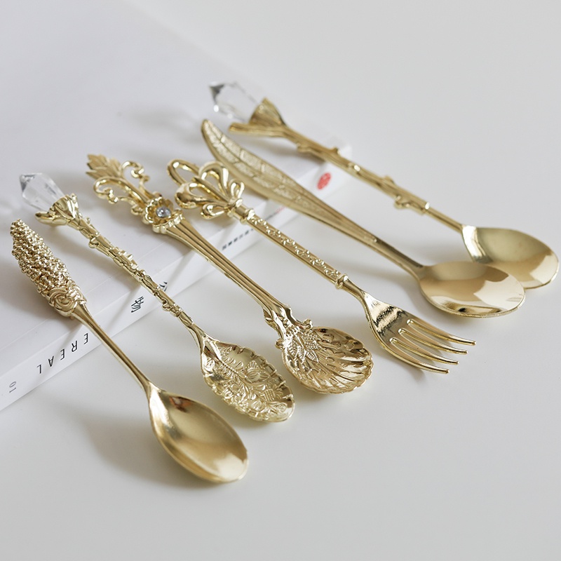 Europeu Estilo Royal Garfo Colher De Café Talheres Set Mini Sobremesa Café Frutas Talheres Garfo Chá De Sorvete Colher Cozinha