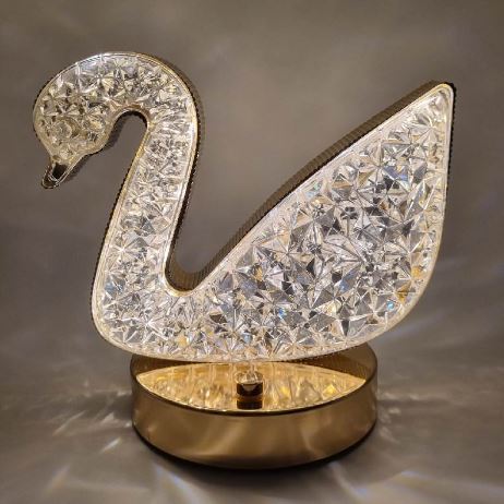 Luminária de Mesa Cisne Lâmpada Quarto Luxuosa Cristal Acrílico 3 Tons de Led