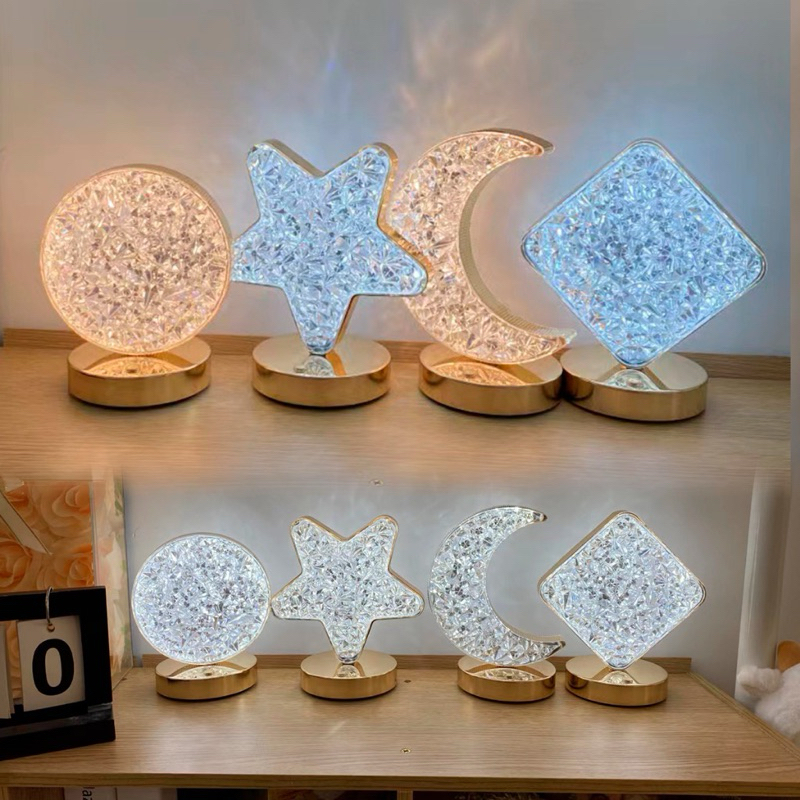 Luminária de Mesa Lua Lâmpada de Quarto Luxuosa Cristal Acrílico 3 Tons de Led
