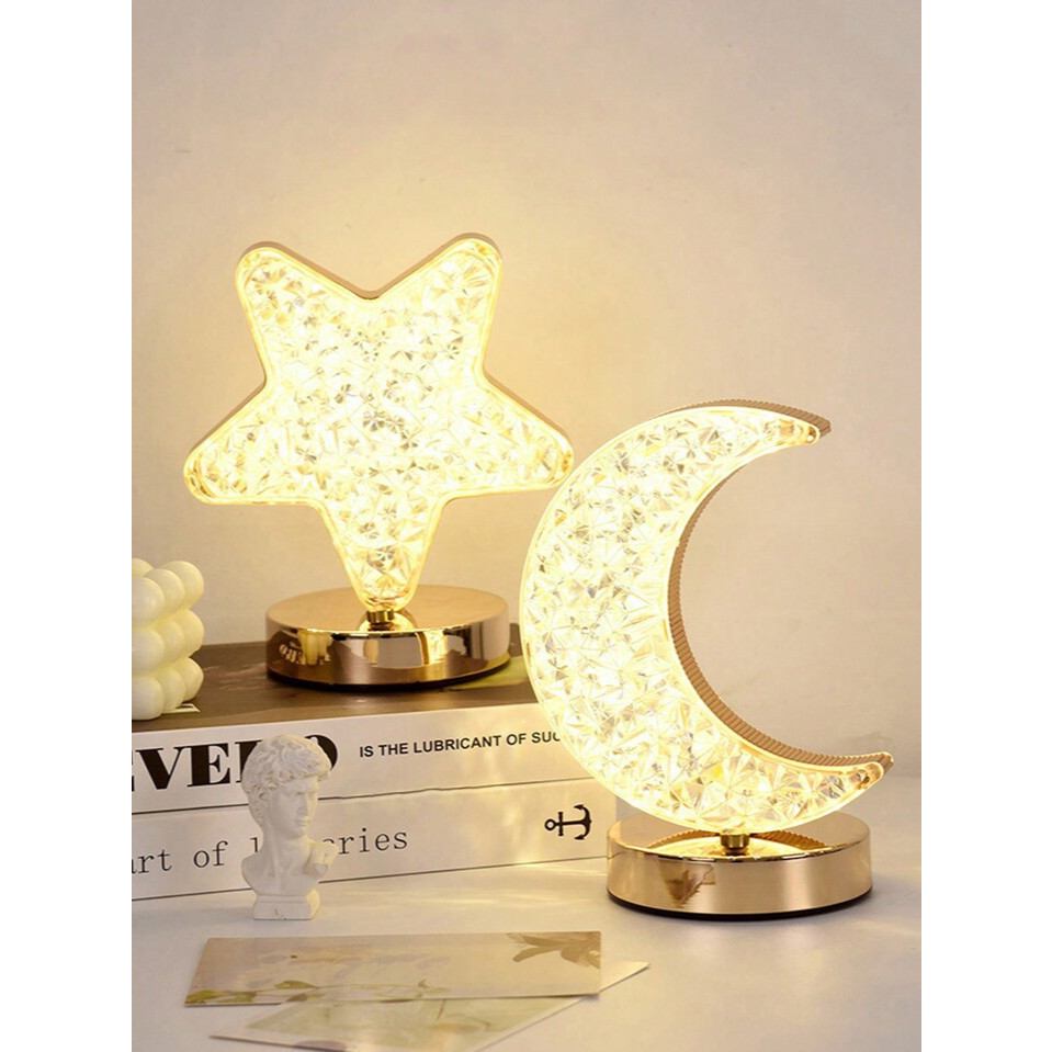 Luminária De Mesa Lua Luxuosa Cristal Acrílico Quarto - 3 Tons De Led
