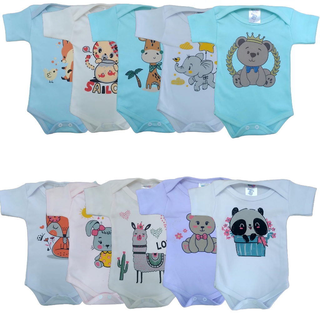 Promoção Kit 5 Body Manga Longa Bebê Malha Estampado Algodão Menino Menina Tamanho Recém Nascido ao 3