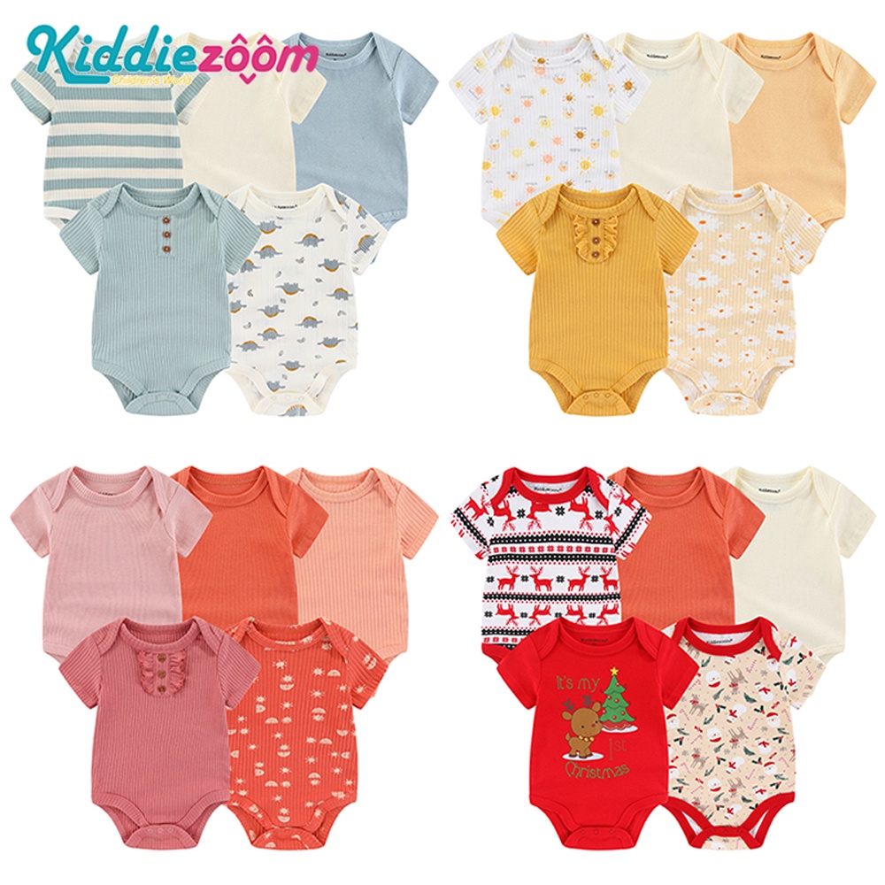 5 Peças De Verão Manga Curta Desenho Animado Recém-Nascido Menino Menina Body Bonito Roupas De Bebê Macio