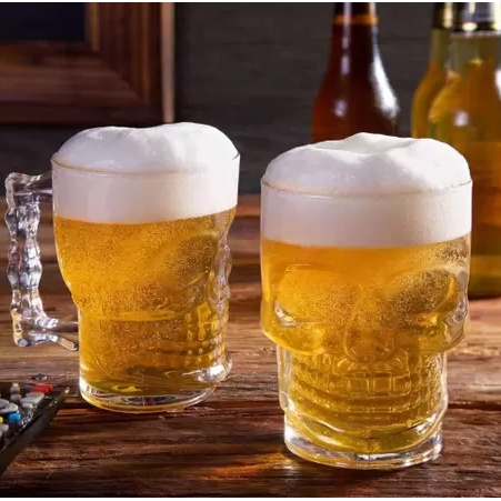Caneca de vidro em formato de Caveira - Diversas Bebidas 37 e 500 0ml
