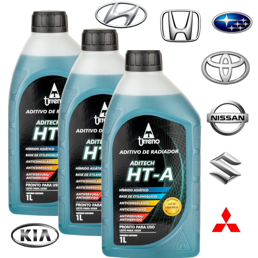 3 Aditivo para Radiador Híbrido HT-A Azul Pronto Uso Original Tirreno Para Motor em Liga de Alúmínio Aprovado na montadoras Hyundai, Toyota, Honda, Nissan, Mitsubishi, Suzuki e Subaru