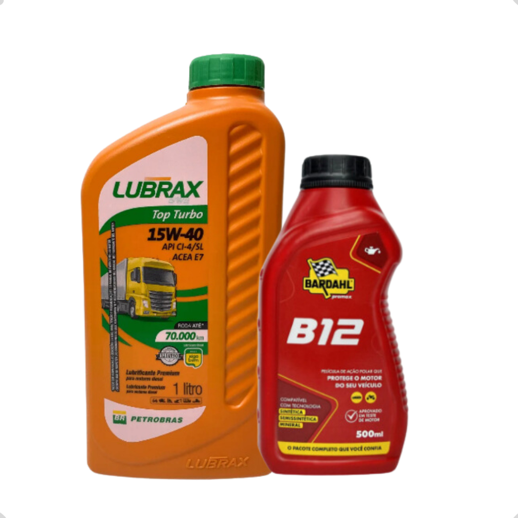 KIT LUBRAX TOP TURBO ESSENCIAL 15W40 E ADITIVO DE MOTOR BARDAHL B12 500ML