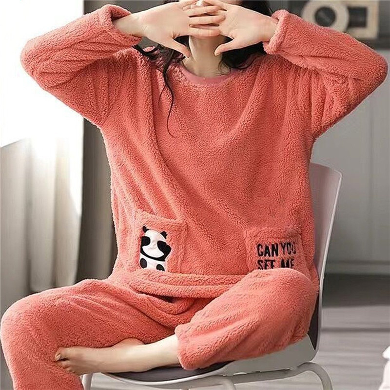 Pijama Femininos Conjuntos Inverno Feminino Soft Plus Size De Malha Algodao Flanela Plush Flanelado Feminino Longo