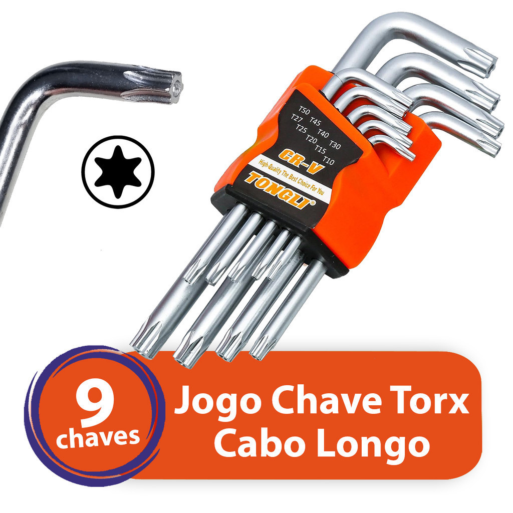 Kit Jogo de Chave Torx Longa 9 peças Aço Cromo Vanadium