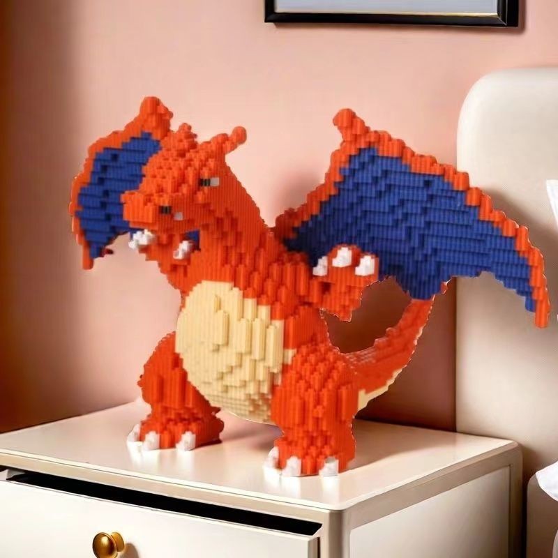 Compatível com blocos de construção Lego Pokémon Charizard Dragão respiratório de fogo Série de pequenas partículas Cost