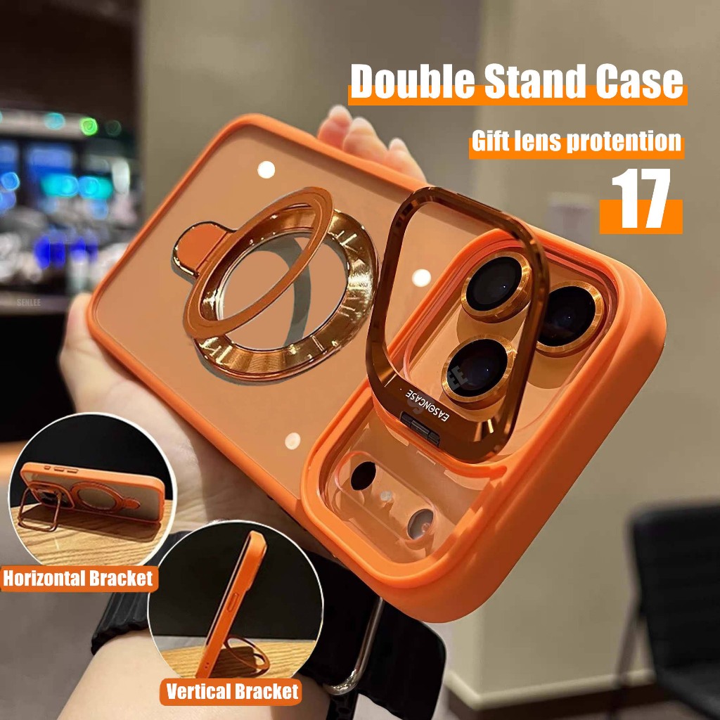Capa De Suporte De Metal Para iPhone 16 Pro Max 15 12 13 14 17 11 Plus Dura Transparente À Prova De Choque