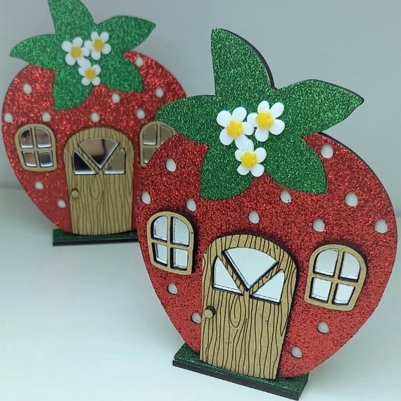Casinha e Cestinha de Piquenique em MDF e EVA - KITS COM 05 PEÇAS - Festa Tema Moranguinho