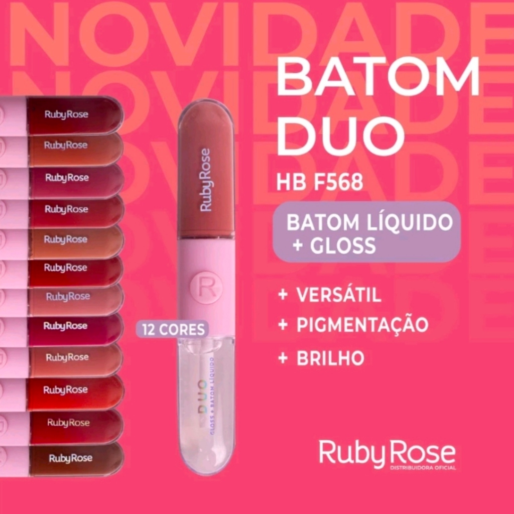 Batom líquido e gloss Duo Ruby Rose 2 em 1 Lançamento HBF568 novo