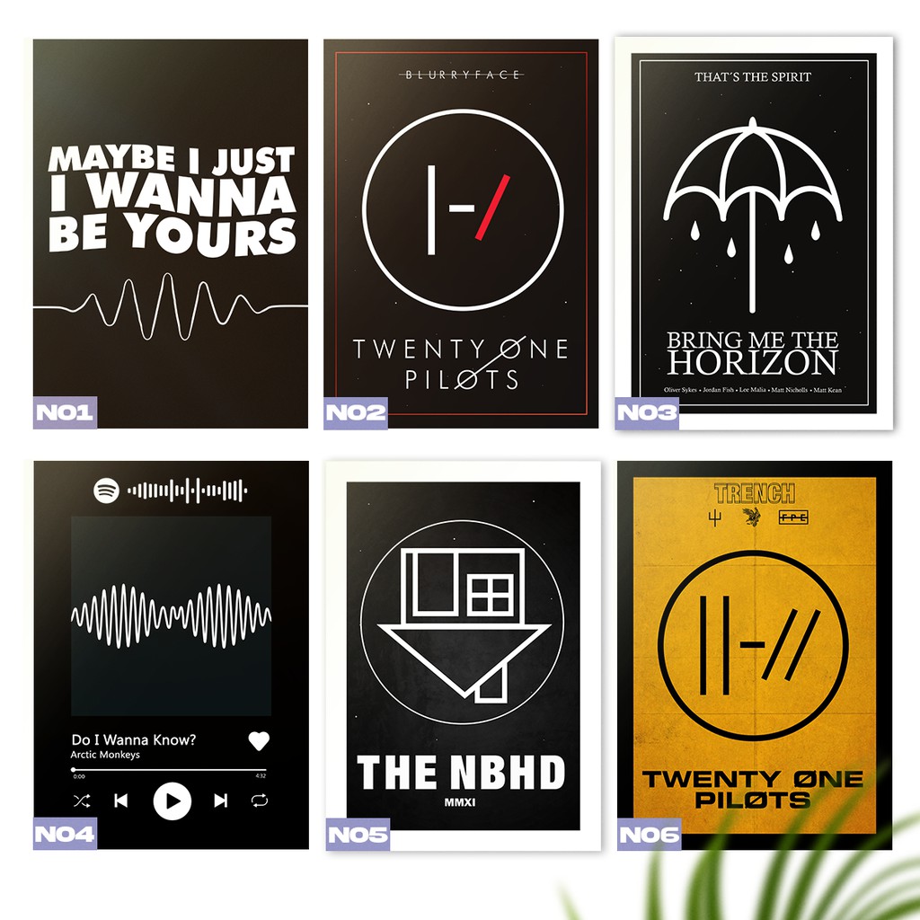 Placas Decorativas MDF - Indie The Neighbourhood, Arctic Monkeys, Bring Me The Horizon (14,8 x 21 cm)