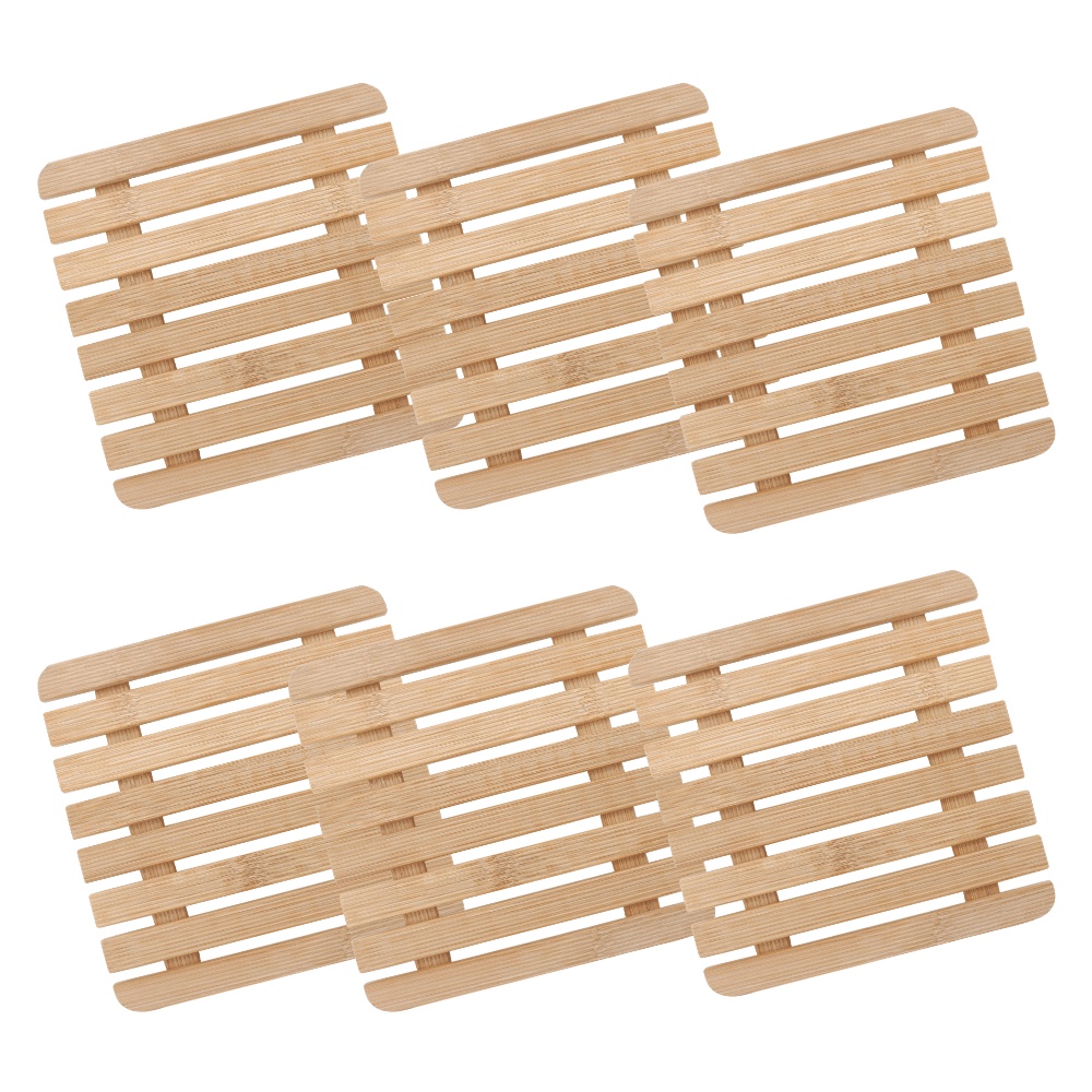 Kit 6 Descanso Panela Travessa Suporte Apoio Quadrado Bambu 17 cm Mesa Posta Servir