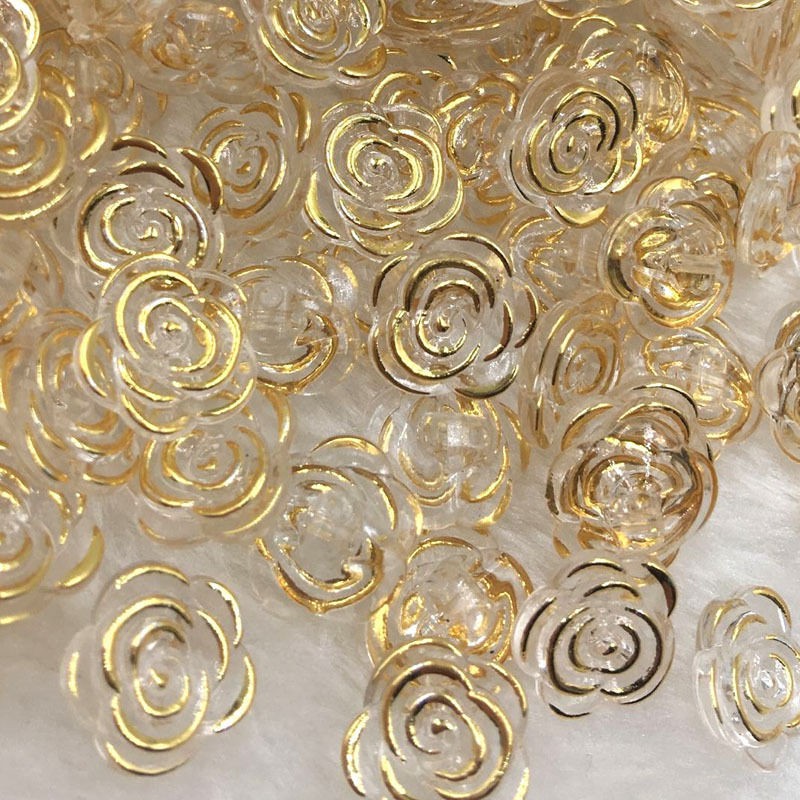 100pcs Borda Dourada Botões Acrílicos Transparentes De Flor De Rosa Para Decoração Acessórios De Costura Artesanal PT134