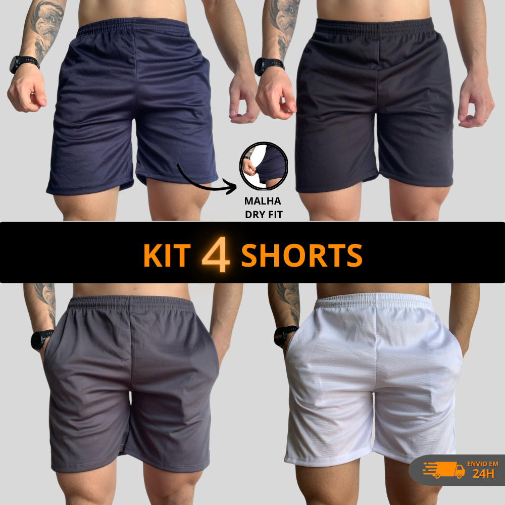 Kit 4 Shorts Masculino Academia Dry Fit Bermuda Masculina Elastano Corrida Praia Treino Malha Leve